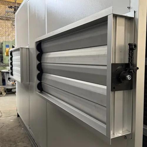 | مشخصات دمپر دستگاه | قاب پروفیل آلومینیومی و تیغههای آلومینیومی ایرفویل |